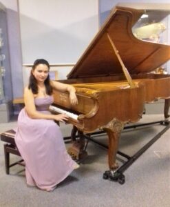 The evening began with a beautiful performance of the Bach Partita No.1 in B Flat, played with careful pedalling which never at any time affected the clarity. This was a popular work enjoyed by everyone. Then came the Medtner Sonata Romantica in B flat minor which was quite a revelation as many of the audience had not heard this before. Sadly, Medtner’s music is not widely performed even in Russia. Like many artists, Medtner emigrated from Russia in 1919 after the revolution and after his death in England his wife returned his entire archive to his homeland. In April 2017 Dinara Klinton was part of a group of students working with Professor Dina Parakhina who performed the entire set of fourteen sonatas at the Rachmaninov Hall of the Moscow Tchaikowsky Conservatory. The Sonata Romantica is a very difficult work but was played with great power and authority. The technical difficulties presented no challenge and despite being a relatively unknown work to the audience it was extremely well received. After the interval we heard a beautiful performance of the Sonata in C sharp minor, Op. 27 No.2 (“Moonlight”) by Beethoven, which was enjoyed by the audience. The programme ended with two Transcendental Studies, Nos. 9 and 10, by Liszt, which again were beautifully played and enjoyed. The evening had clearly been a great success as the audience demanded an encore and Dinara finished the evening with Chopin’s study Op. 25 No.1 in A flat.